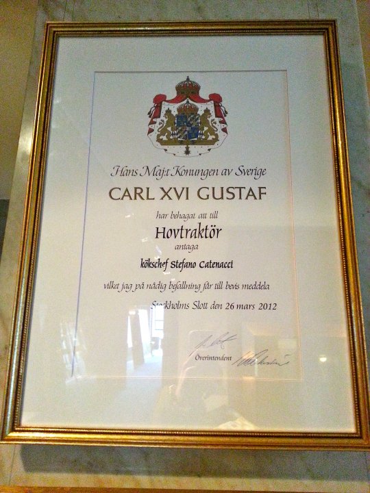 I dag hade jag den stora äran att bli bjuden på en kalaslunch av bästa Stefano Catenacci. Medan jag stod och väntade beundrade jag alla utmärkelser Stefano har fått. Det är svårt att inte bli imponerad. Dessutom är han kunglig hovleverantör. Vi hade massor att prata om. Inte minst böcker. Stefano har ju släppt ett antal böcker. Inte minst står han bakom den otroligt läckra boken om Operakällaren. En riktigt snygg coffeetablebook. Nu önskar jag bara att han lär mig laga riktigt god mat…
